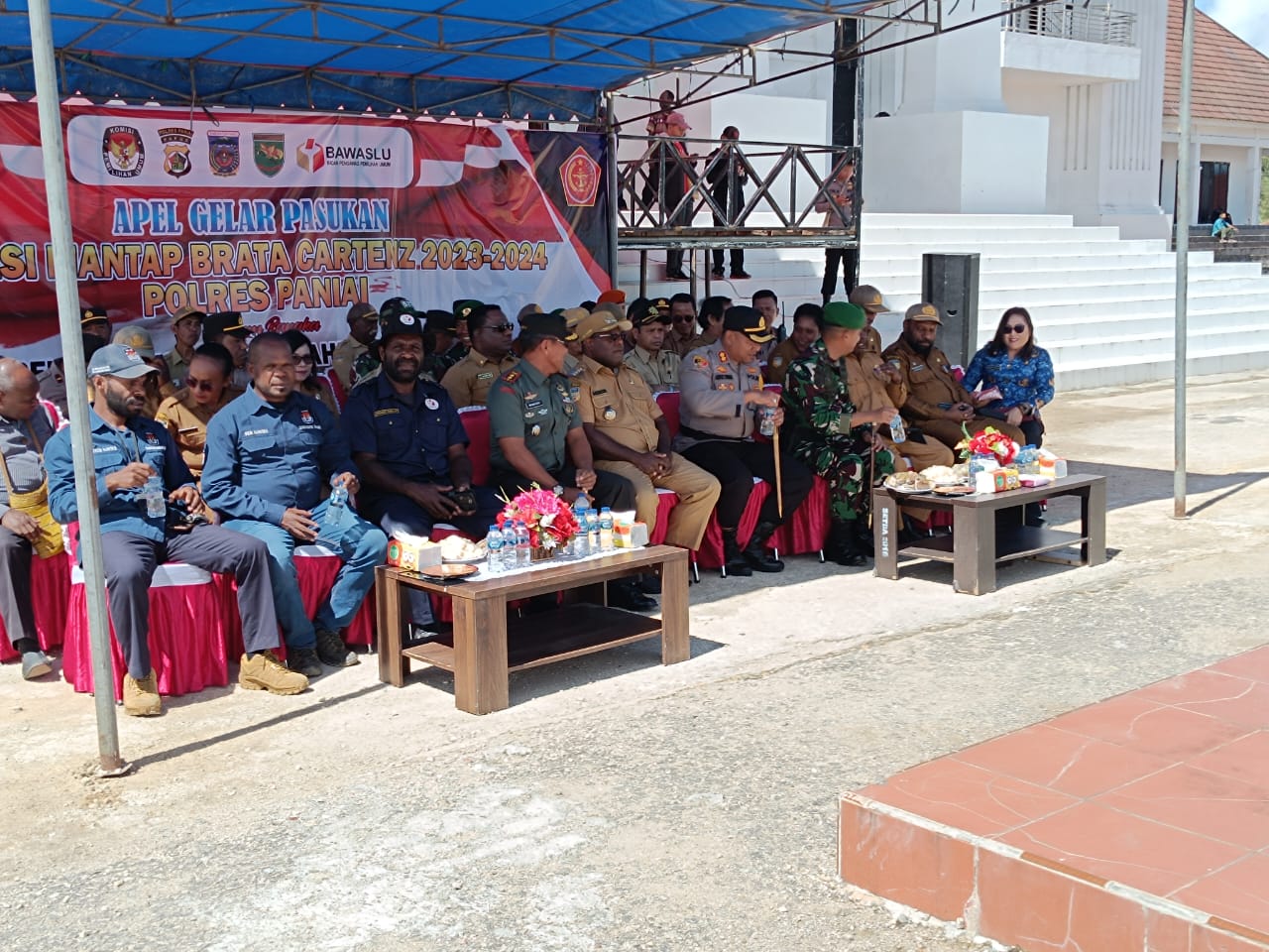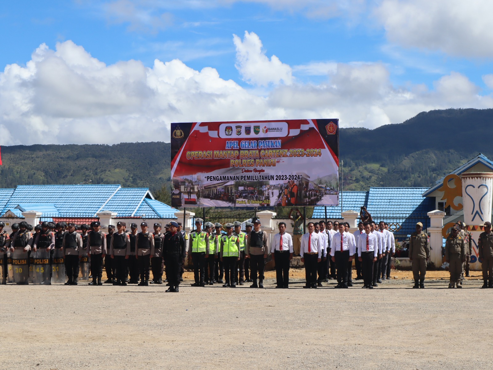Paniai, Kepolisian Resor Paniai melaksanakan Apel Gelar Pasukan Operasi Mantap Brata Cartenz 2023-2024, bertempat di Lapangan Kantor Bupati Kabupaten Paniai, Selasa (17/10).