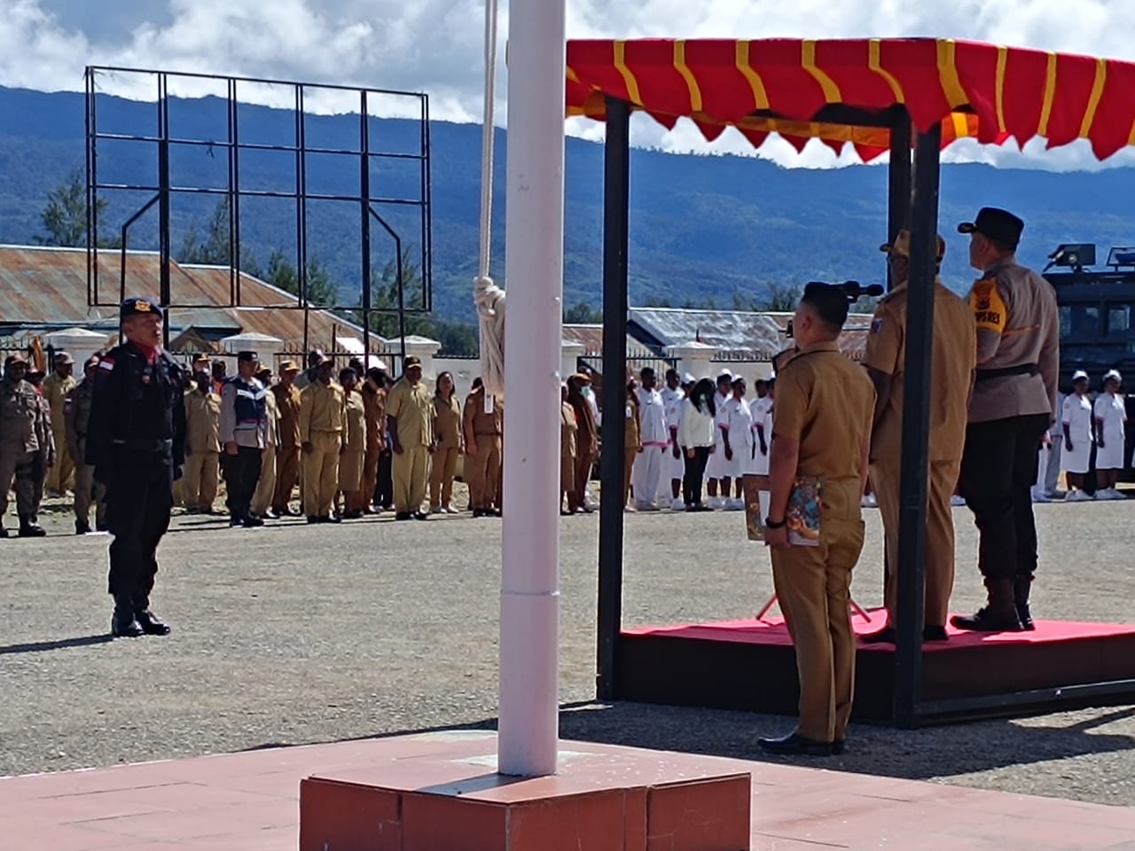 Kapolres Paniai yang membacakan amanat Kapolri menyampaikan bahwa pihaknya menggelar Apel Gelar Pasukan Ops Mantap Brata 2023-2024.