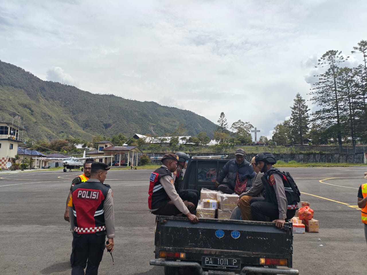 Kapolres Puncak Jaya AKBP Kuswara, S.H., S.I.K., M.H melalui Kabag Ops Kompol R. Ahmad Hari Junianto, S.Kom saat dikonfirmasi mengatakan bahwa dengan menggunakan pesawat udara Smart dan Revan via Bandara Timika, siang ini telah datang sisa logistik surat suara gubernur dan wakil gubernur Papua Tengah.