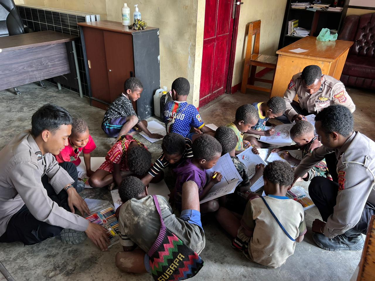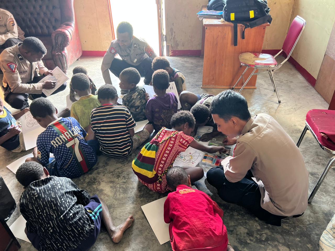 Kegiatan dilanjutkan dengan pelajaran membaca dan berhitung yang dilaksanakan oleh anggota Sat Lantas Polres Intan Jaya.
