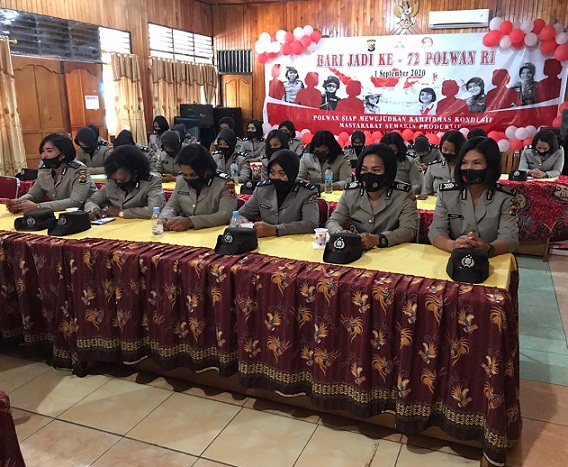 Nabire – Jajaran Polisi Wanita (Polwan) Polri, berulang tahun yang ke-72 pada hari selasa (01/09). Di Nabire, syukuran HUT Polwan dilaksanakan secara virtual, dengan usungan tema “Polwan Siap Mewujudkan Kamtibmas Kondusif, Masyarakat Semakin Produktif.”