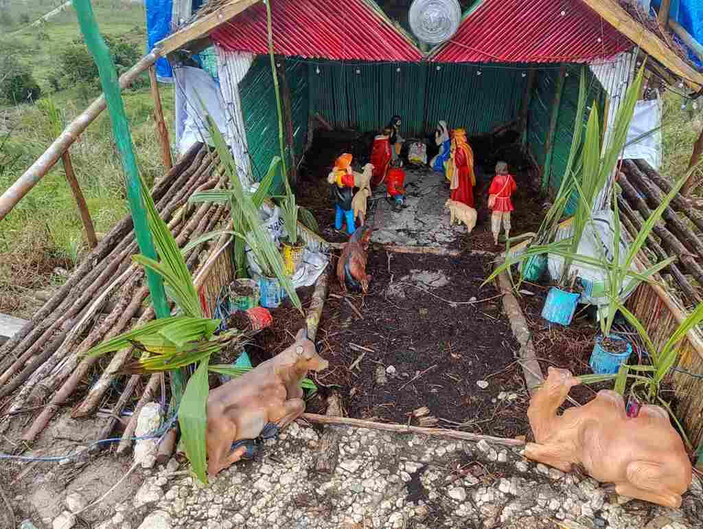 “Pondok ini kami bangun sederhana saja, seperti kandang tempat Yesus lahir. Kami ingin semua orang yang lewat bisa mengingat bahwa Natal adalah tentang kesederhanaan, kasih, dan damai,” ujar Doo Magapai saat ditemui wartawan, Selasa (24/12/2025).