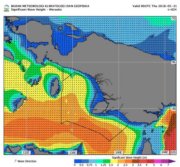 Prakiraan Cuaca Pelayaran & Tinggi Gelombang Perairan Papua & Papua Barat, Kamis, 31 Mei 2018