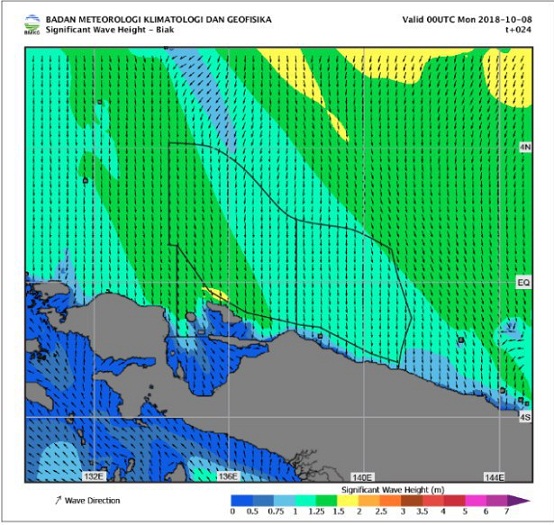 Prakiraan Cuaca Pelayaran & Tinggi Gelombang Perairan Papua & Papua Barat ini diterima Nabire.Net dari Prakirawan BMKG Nabire, Eusebio Andronikos.