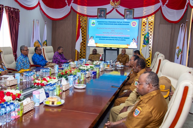 Diberitakan sebelumnya, Pemerintah Provinsi Papua Tengah melalui Dinas Pendidikan dan Kebudayaan resmi menandatangani nota kesepahaman (MoU) dan perjanjian kerja sama dengan Universitas Papua (UNIPA) terkait implementasi Program Sekolah Sepanjang Hari (SSH). Penandatanganan ini berlangsung di ruang rapat kerja Gubernur Papua Tengah, Selasa (23/09/2025).