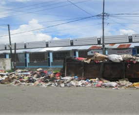 (Gardu PLN di Pasar Sentral Kalibobo yang dipenuhi tumpukan sampah)