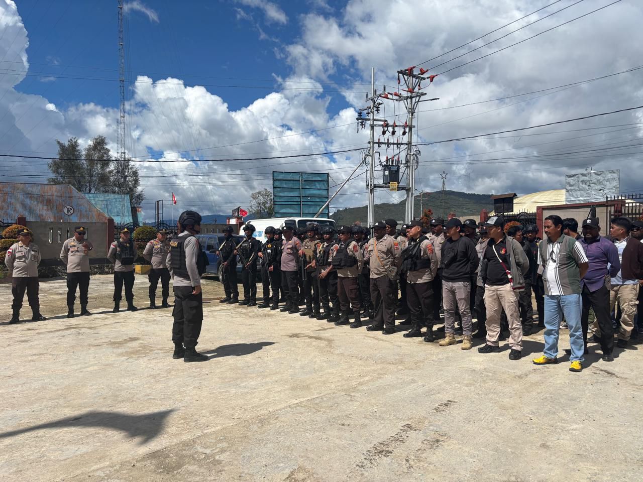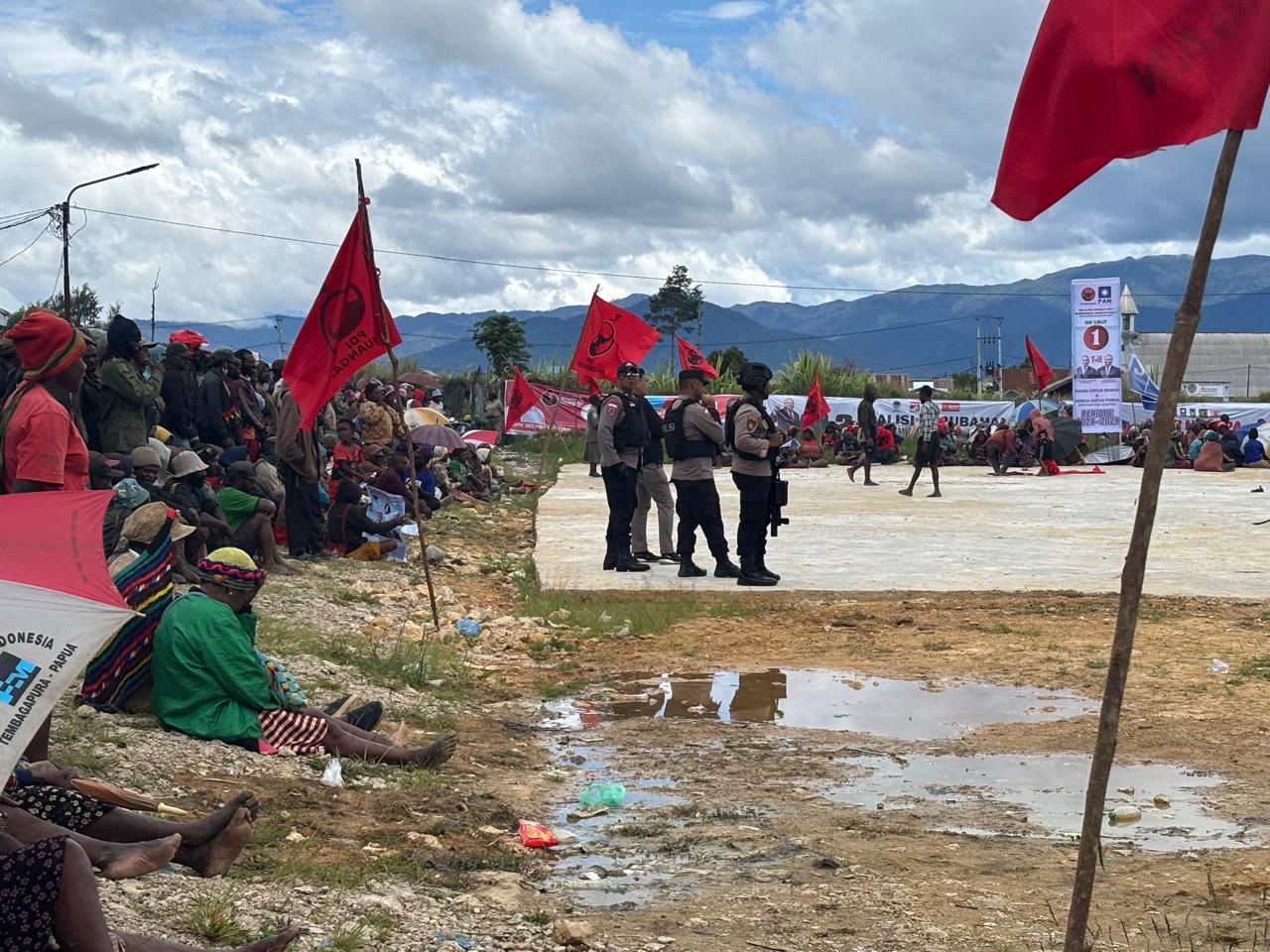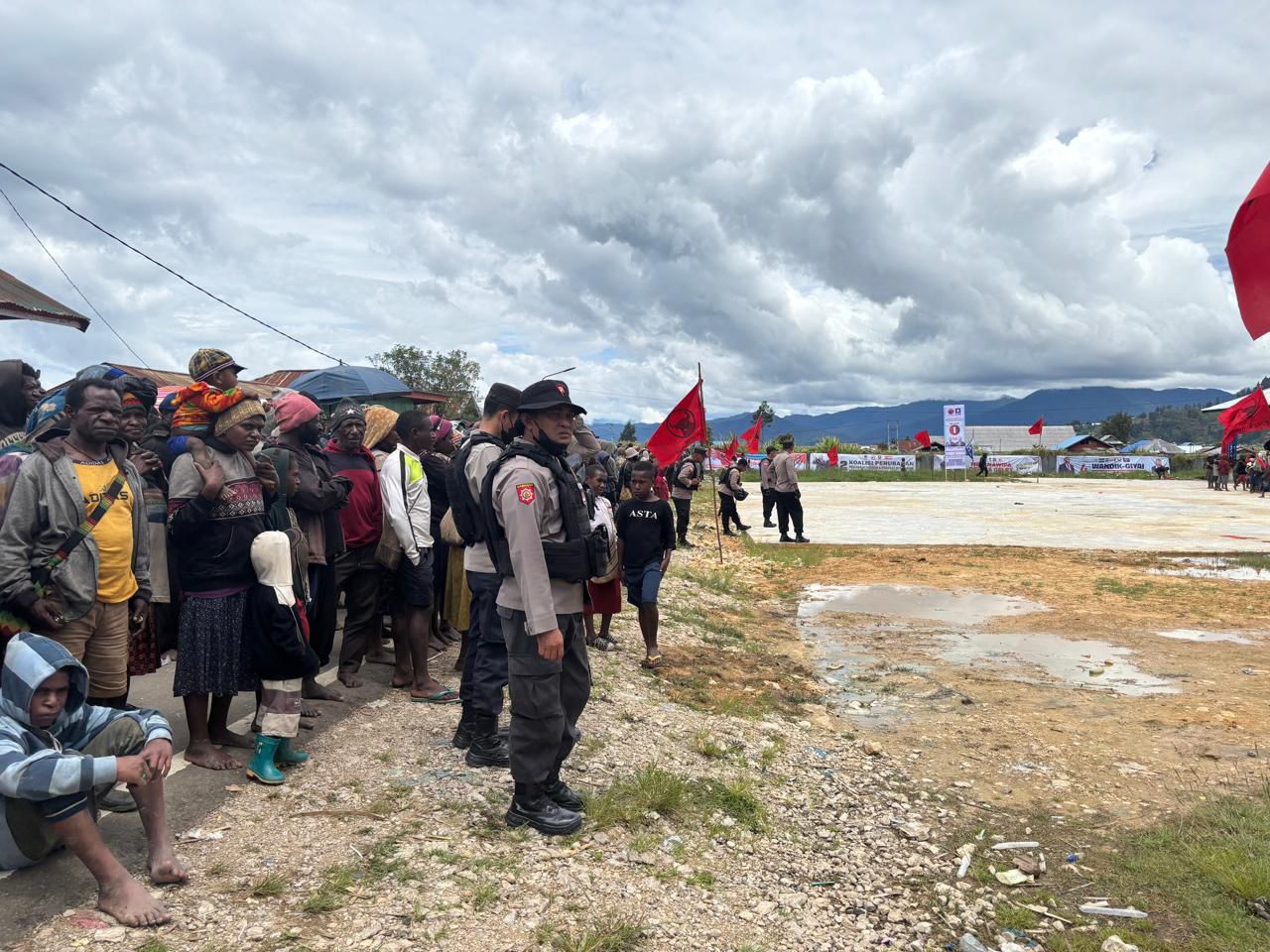 Puluhan Personel Polres Paniai Amankan Kampanye Terbuka Paslon Bupati dan Wakil Bupati Paniai 2024