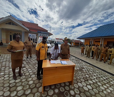 Dalam apel tersebut, Pemkab Dogiyai menyerahkan bantuan dua unit mobil ambulance untuk Puskesmas Keliling, kepada Puskesmas Perawatan Moanemani dan Puskesmas Timepa.