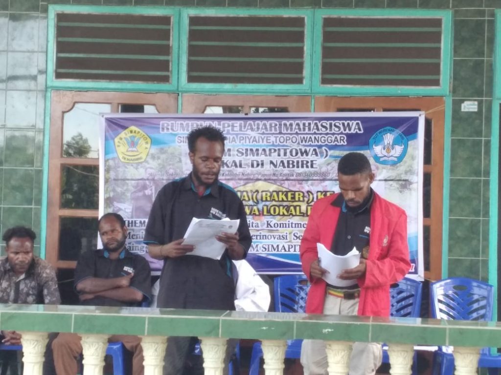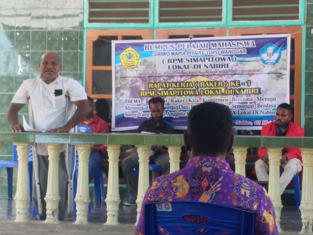 Setelah itu, Ketua Badan Pengurus Rumpun Pelajar Mahasiswa Siriwo Mapia Piyaiye Topo Wanggar (RPM SIMAPITOWA) lokal Nabire, Manoa Mote, dalam sambutannya berharap agar raker ini bisa menjadi acuan dalam pembuatan program kerja setahun.