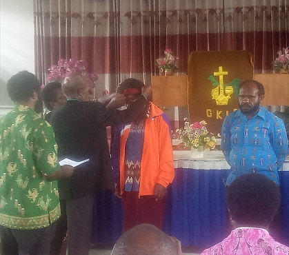 Usai khotbah, Raker dibuka secara resmi oleh Ketua Klasis Kamuu ditandai dengan penyematan tanda peserta Raker.