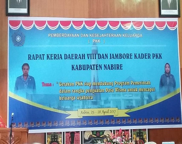 Rapat Kerja Daerah ke VIII dan Jambore Kader PKK tingkat kabupaten Nabire, yang diikuti 15 Distrik, resmi dibuka selasa 25 april 2017, bersamaan dengan pelantikan pengurus TP-PKK se-Nabire.