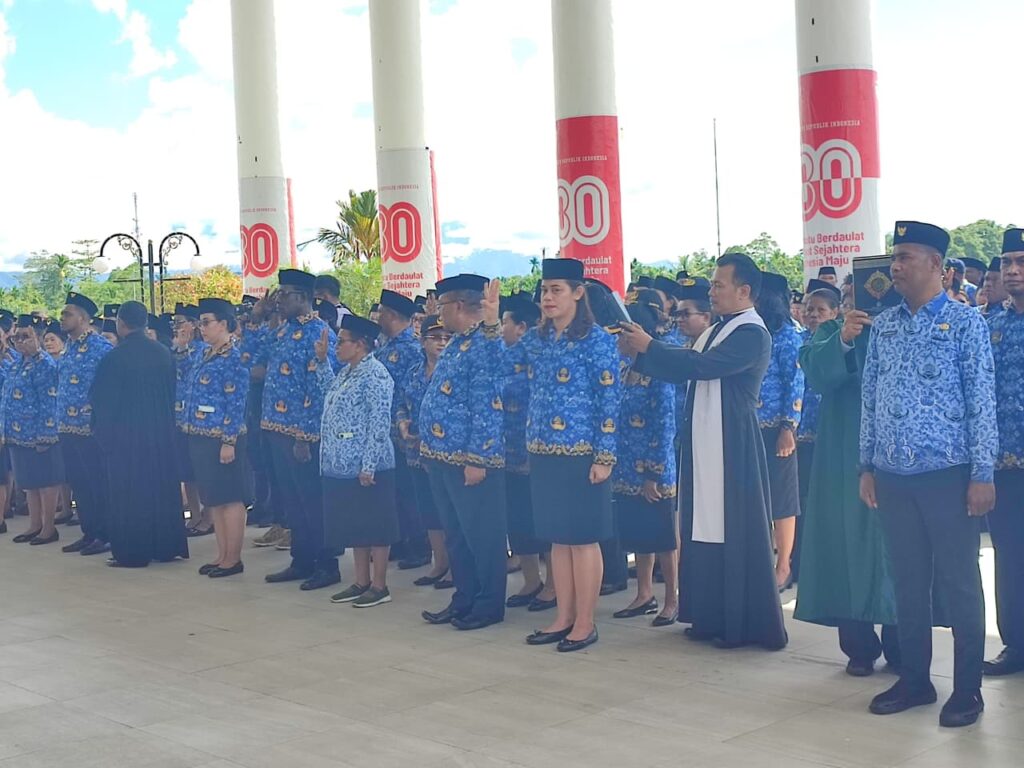 Mimika, 29 September 2025 – Sebanyak 278 Pegawai Negeri Sipil (PNS) di lingkungan Pemerintah Kabupaten (Pemkab) Mimika mengikuti sumpah janji jabatan sebagai PNS. Kegiatan ini dipimpin langsung oleh Bupati Mimika, Johannes Rettob, di Pelataran Gedung A Pusat Pemerintahan Kabupaten Mimika, Senin (29/9/2025).