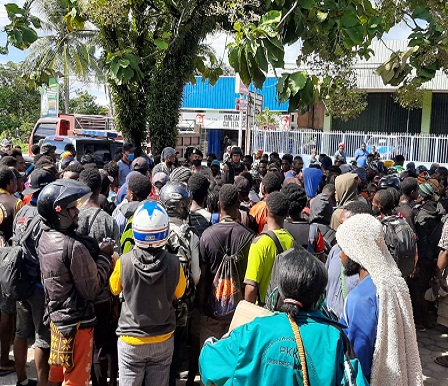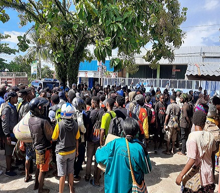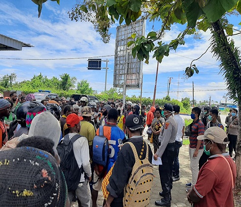 Nabire – Ratusan warga yang berasal dari kabupaten Dogiyai, Deiyai, Paniai dan Intan Jaya senin pagi berkumpul di depan Hotel Jepara II Wadio untuk meminta jaminan dari Kapolres Nabire agar mereka bisa tiba di kampung mereka dan mendapat ijin di setiap Posko yang dilewati.