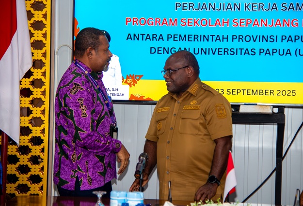 Diberitakan sebelumnya, Pemerintah Provinsi Papua Tengah melalui Dinas Pendidikan dan Kebudayaan resmi menandatangani nota kesepahaman (MoU) dan perjanjian kerja sama dengan Universitas Papua (UNIPA) terkait implementasi Program Sekolah Sepanjang Hari (SSH). Penandatanganan ini berlangsung di ruang rapat kerja Gubernur Papua Tengah, Selasa (23/09/2025).