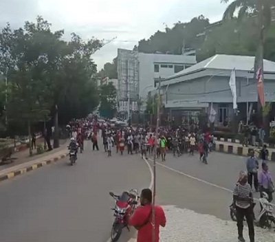 Massa datang dari berbagai wilayah baik dari Abepura, maupun dari Jayapura. Selain long march, ada juga massa yang menggunakan kendaraan bermotor.