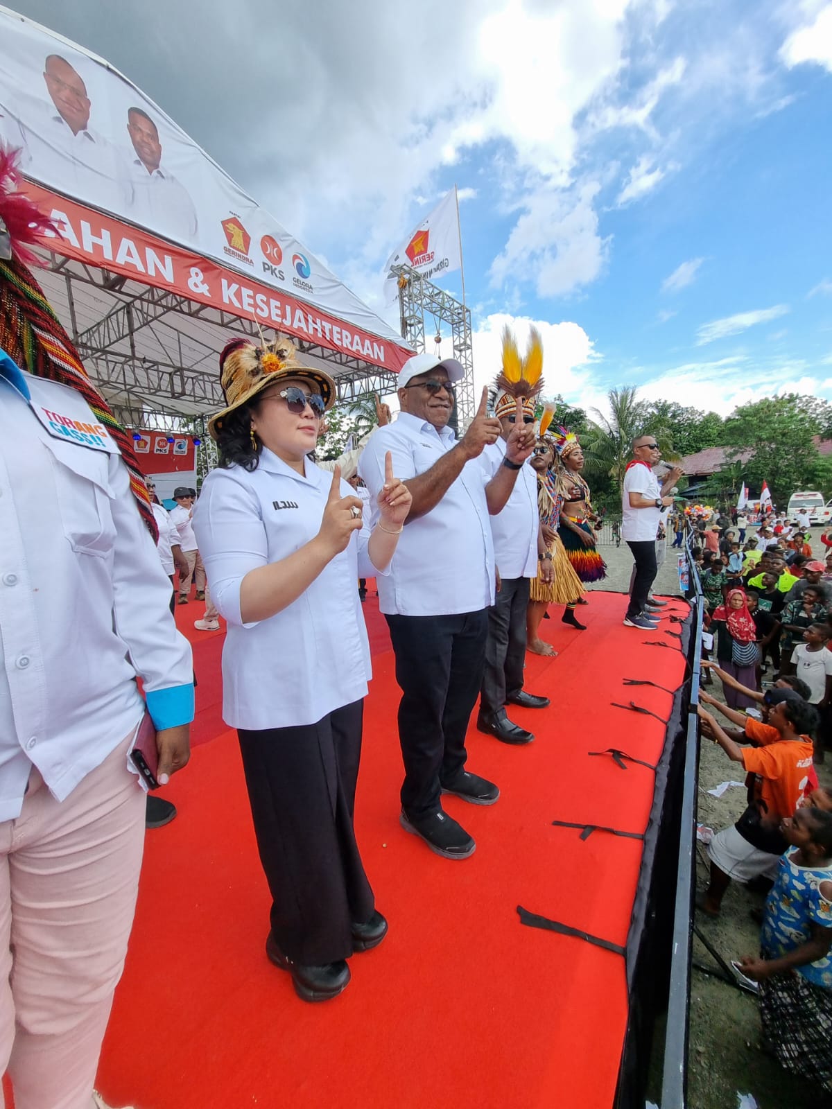 Suasana kampanye semakin meriah dengan perpaduan tarian tradisional dari berbagai suku Papua yang menggambarkan kekayaan budaya, dipadukan dengan pertunjukan modern dari generasi muda. Perpaduan ini tidak hanya menghibur, tetapi juga menjadi simbol persatuan dan semangat kolektif untuk mendukung perubahan yang dibawa oleh JWW-AA.