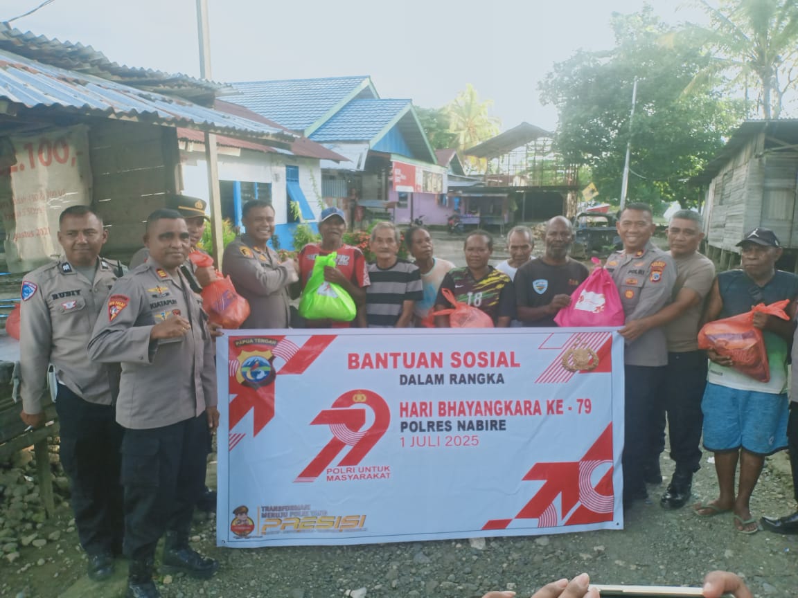Nabire, 24 Juni 2025 – Dalam rangka menyambut Hari Ulang Tahun Bhayangkara ke-79, Kepolisian Resor (Polres) Nabire di bawah kepemimpinan AKBP Samuel D. Tatiratu, S.I.K., menggelar rangkaian kegiatan bakti sosial di delapan titik strategis di wilayah Kabupaten Nabire.