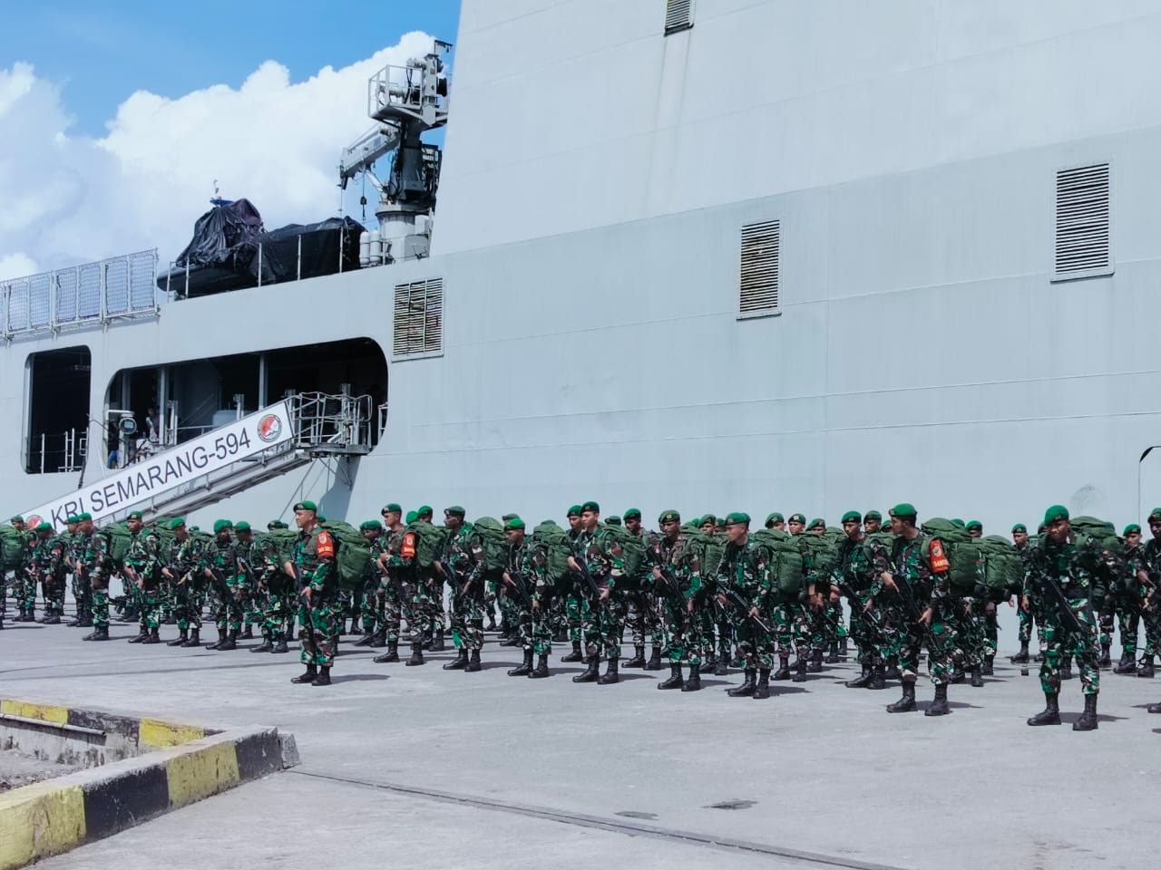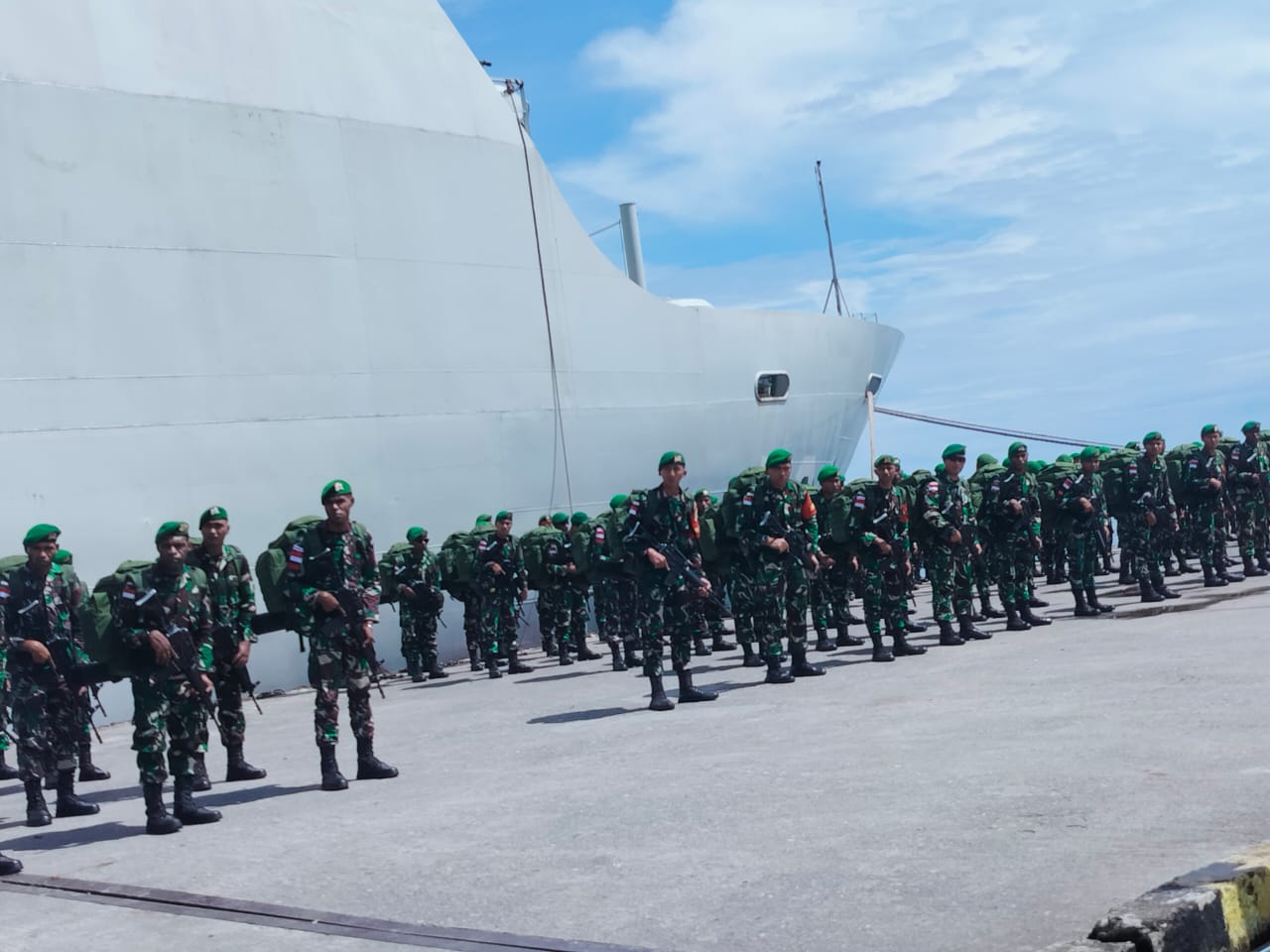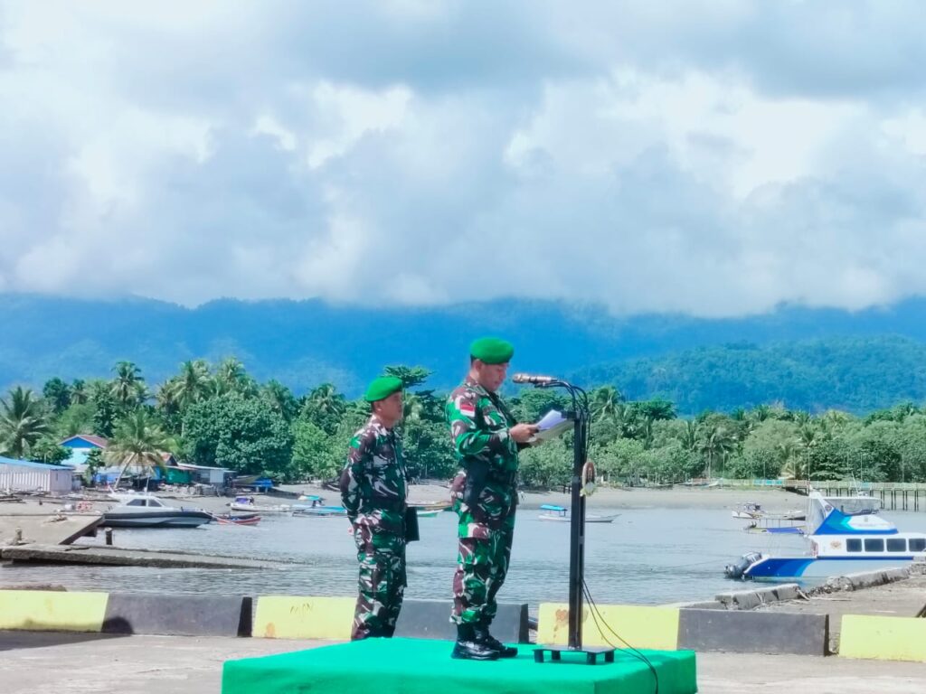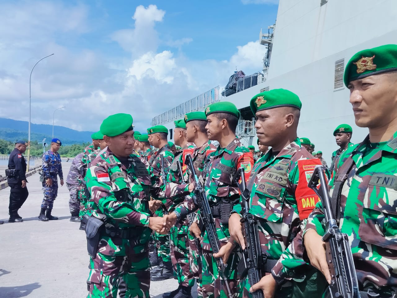 Nabire, 5 Juli 2024 – Pelabuhan Samabusa, Nabire, menjadi saksi pelaksanaan upacara penerimaan Satgas Pamtas Kewilayahan Yonif 756/Wimane Sili Kolakops 173/Praja Vira Braja. Upacara tersebut dipimpin oleh Kasrem 173/PVB, Kolonel Inf Feksy Dimunry Angi, S.E., M.M.