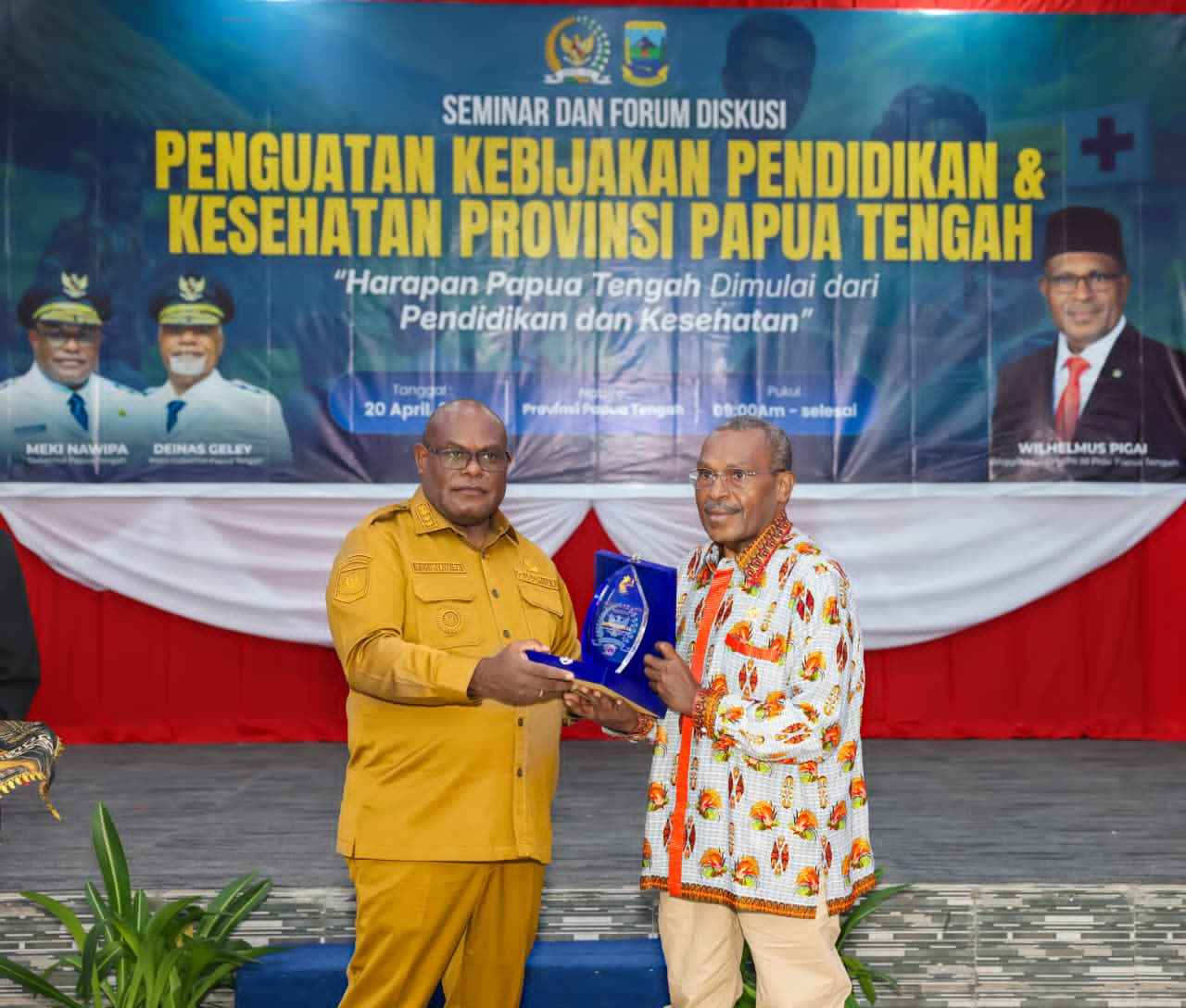 Nabire, 20 April 2026 – Seminar dan forum diskusi bertajuk Penguatan Kebijakan Pendidikan dan Kesehatan Provinsi Papua Tengah yang diselenggarakan oleh anggota DPD RI perwakilan Papua Tengah, Wilhelmus Pigai, di Auditorium RRI Nabire, Senin (20/4/2026), dengan mengusung tema besar “Harapan Papua Tengah Dimulai dari Pendidikan dan Kesehatan.”