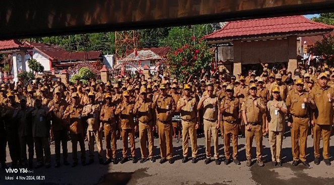 Nabire, 4 November 2024 – Pemerintah Provinsi Papua Tengah mengadakan apel gabungan para pimpinan Organisasi Perangkat Daerah (OPD) dan Aparatur Sipil Negara (ASN) untuk penyerahan Dokumen Pelaksanaan Anggaran Perubahan (DPA-P) tahun 2024. Acara yang dihadiri oleh Pj. Gubernur Anwar Harun Damanik, Sekretaris Daerah, 22 OPD, serta ratusan ASN ini berlangsung di Kantor Provinsi Papua Tengah di Jalan Merdeka, Senin pagi (4/11/2024).