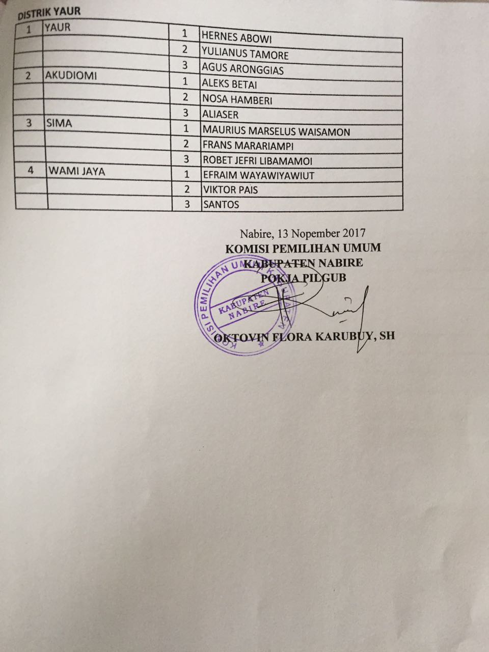 Berikut daftar nama calon anggota PPS yang ditetapkan KPU Nabire, senin 13 November 2017 :