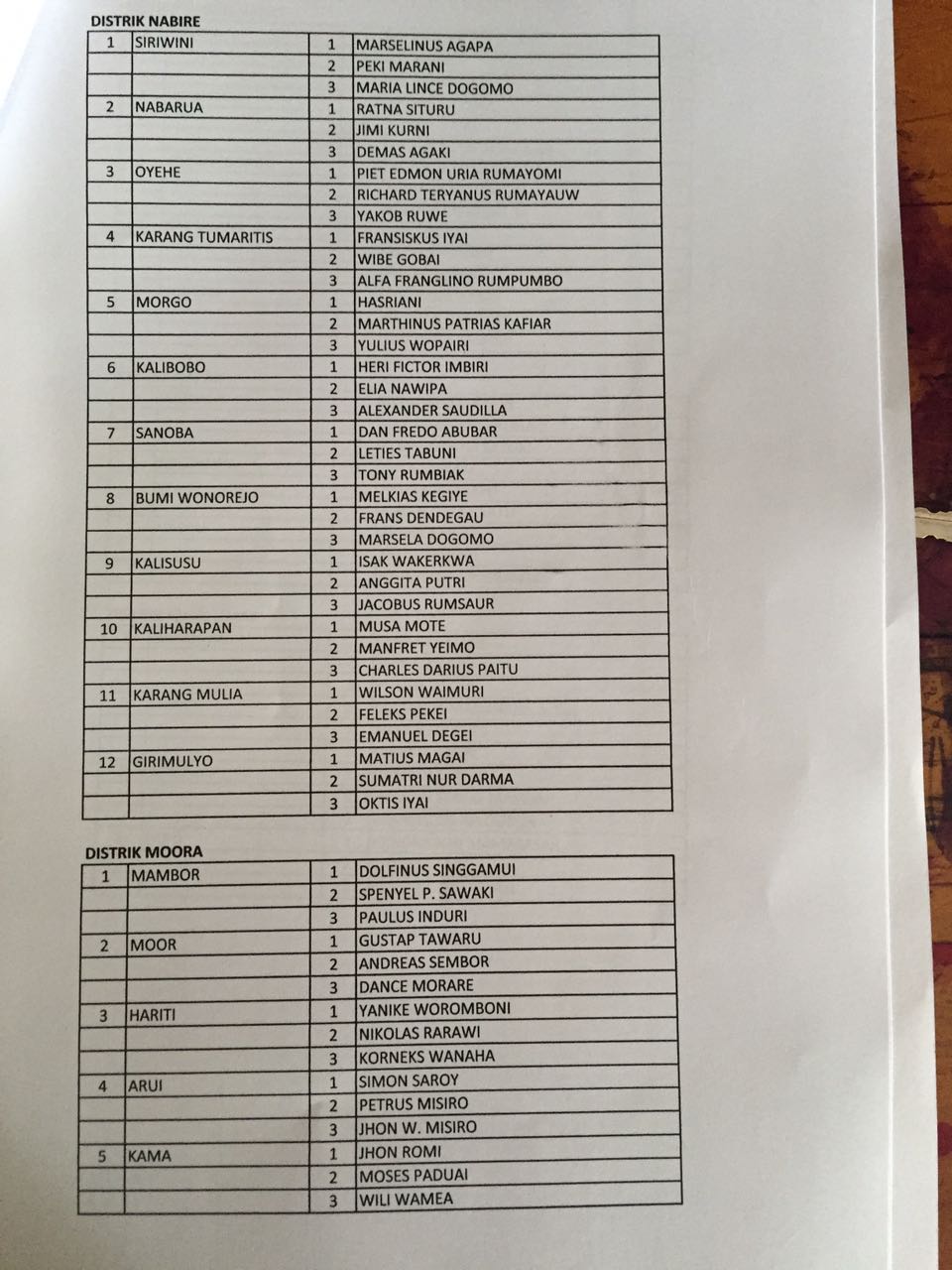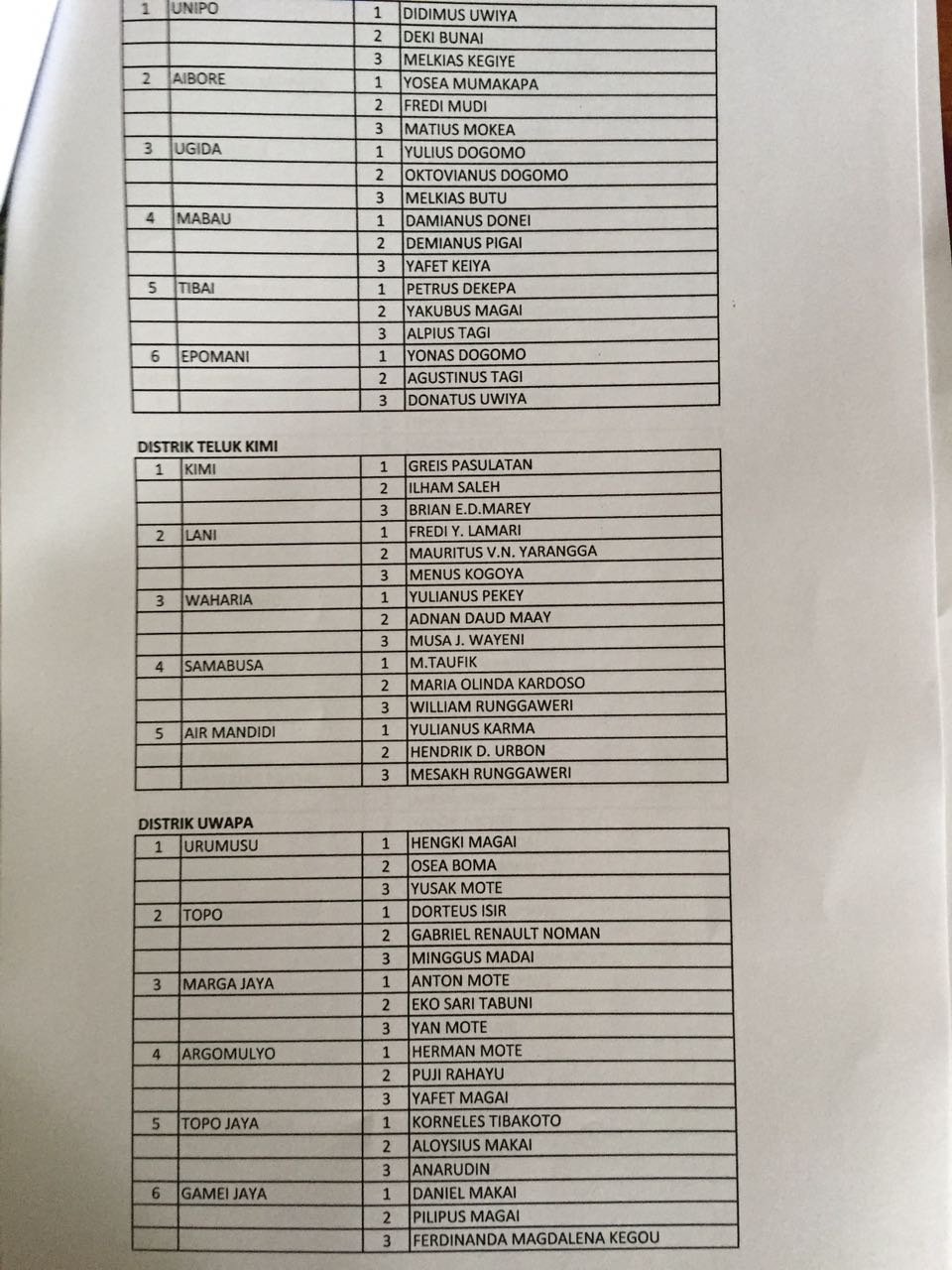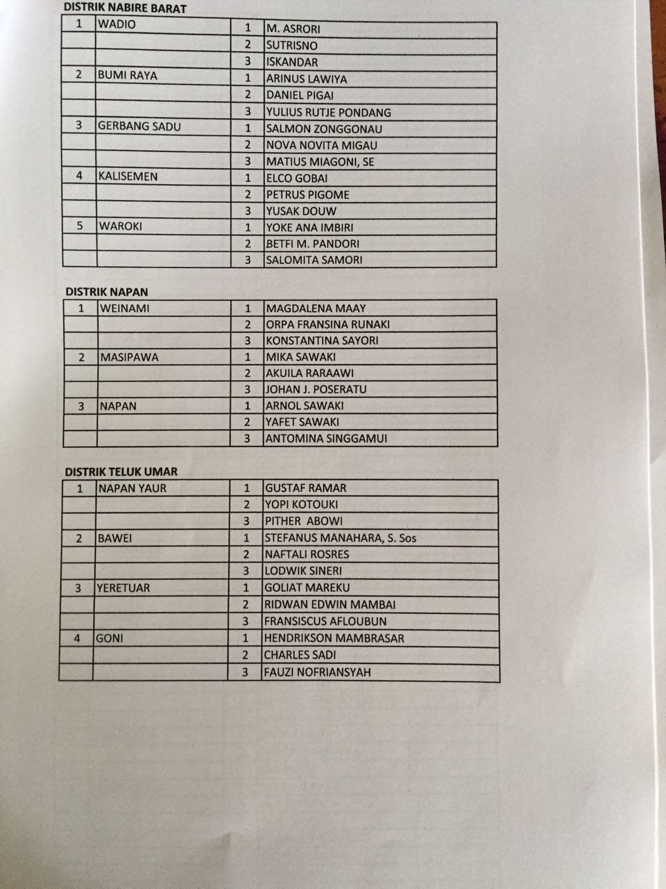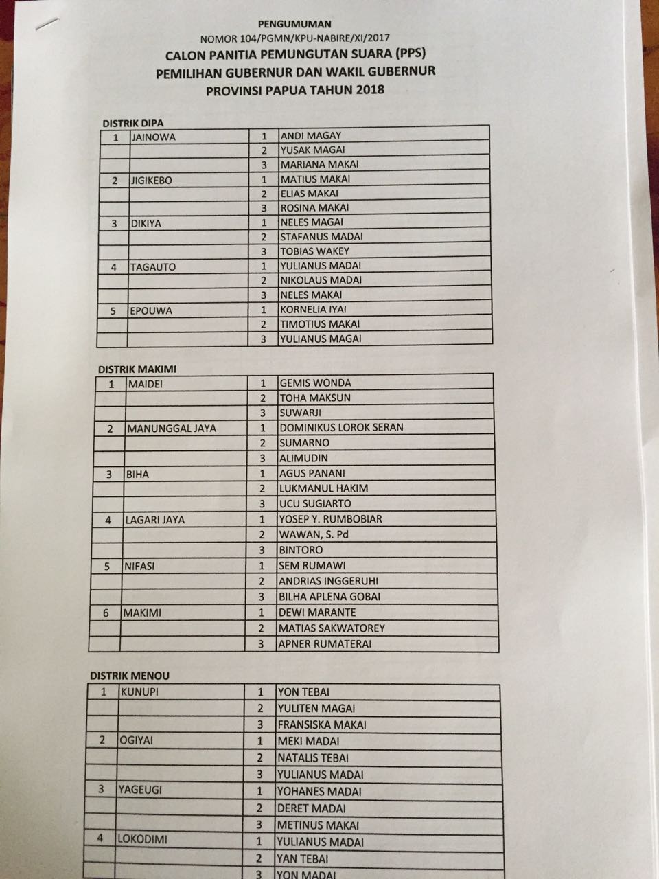 Berikut daftar nama calon anggota PPS yang ditetapkan KPU Nabire, senin 13 November 2017 :