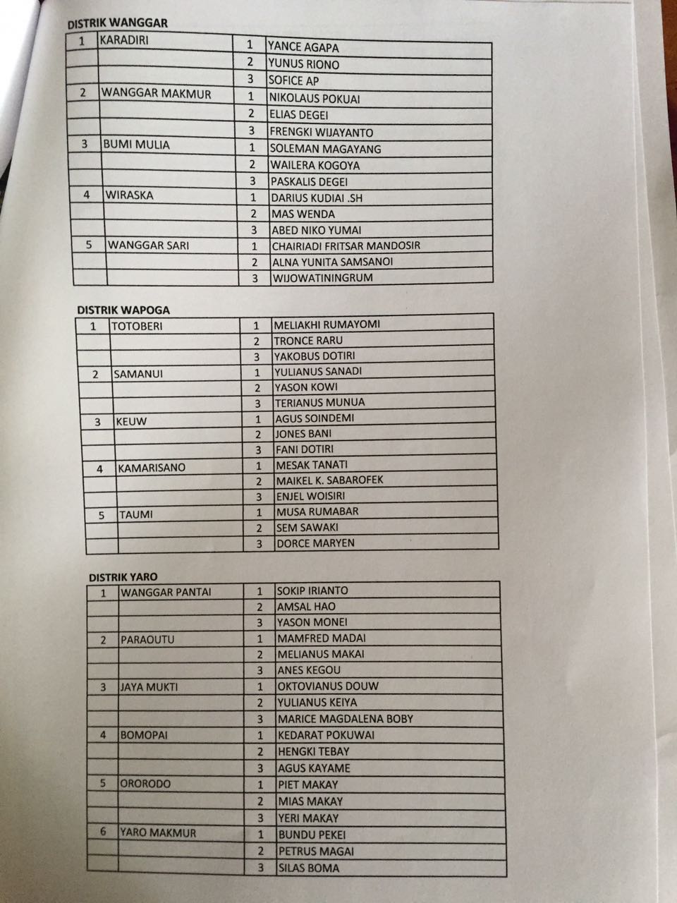Ke 243 nama-nama calon anggota PPS tersebut berasal dari 81 kampung di 15 Distrik di kabupaten Nabire, menghadapi Pemilu Gubernur 2018, serta Pemilu Legislatif dan Pemilu Presiden tahun 2019.