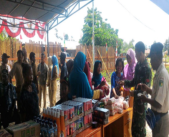 Dalam rangka menyambut HUT TNI ke 72, tahun 2017, Kodim 1705/Paniai, menggelar kegiatan pasar murah bagi warga kampung Gamei Jaya SP IV, Distrik Uwapa Nabire, selasa kemarin 3 Oktober 2017.