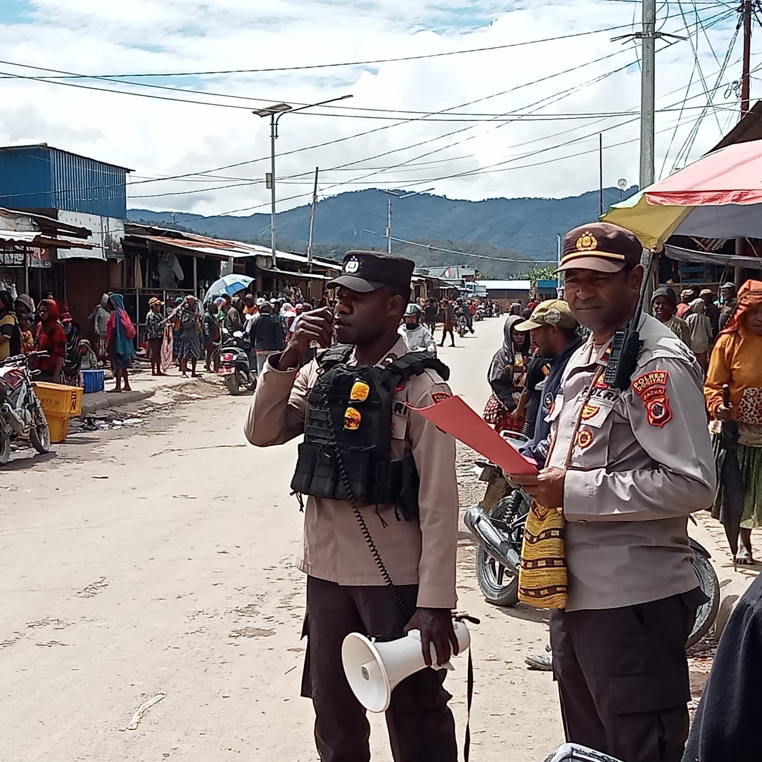 Dogiyai, Bertempat di komplek Pasar Ikebo Moanemani, Distrik Kamuu, kabupaten Dogiyai, telah dilaksanakan imbauan larangan membawa sajam di tempat umum, Rabu (4/10/2023).