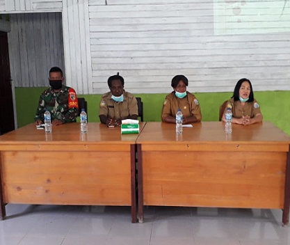 Sosialisasi menghadirkan nara sumber Ibu Natalia Pasang, Kepala Kampung Gerbang Sadu, Ibu Ema Zonggonau, anggota Koramil 1705-01/Nabire dan warga masyarakat serta ibu-ibu posyandu setempat.