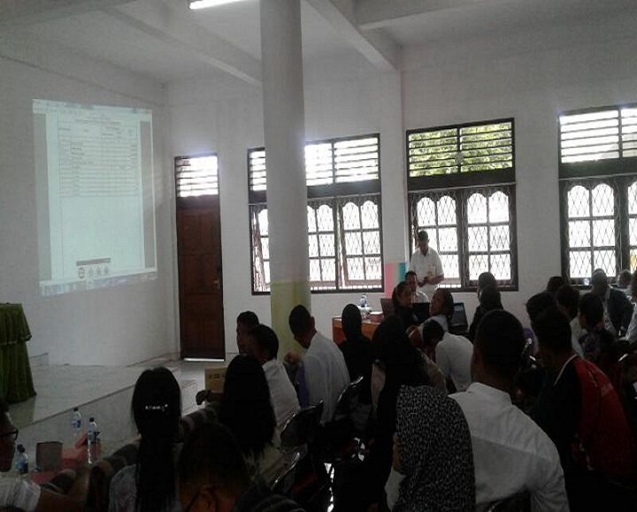 Sebagai pemateri dalam kegiatan sosialisasi ini berasal dari Tim Manajemen BOS Nabire, serta Bendahara Dinas Pendidikan Nabire, Tino Taribaba.
