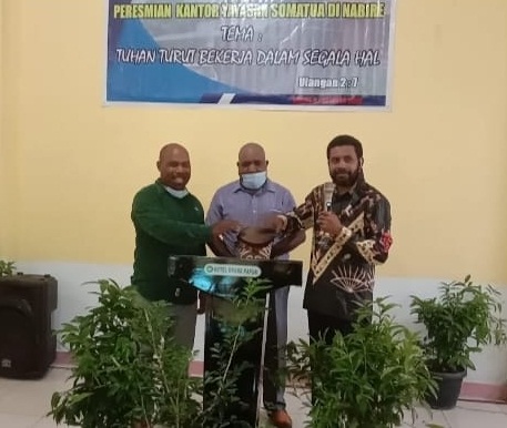 Peresmian Kantor Yayasan Somatua ditandai dengan pemukulan tifa oleh Sekda Nabire, Daniel Maipon. Usai meresmikan, Sekda dalam sambutannya mengapresiasi kehadiran Yayasan Somatua.