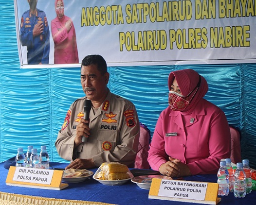 Nabire, Pada hari Senin tanggal 08 November 2021, dalam rangka Supervisi bersama anggota Sat Polairud dan Bhayangkari Polairud Polres Nabire, Dir Polairud Polda Papua Kombes Pol Ir. Kasmolan, M.A.P, Ketua Bhayangkari Dit Polairud Polda Palua Asri Dewi Kurnila melaksanakan tatap muka dengan Anggota Sat Polairud dan Bhayangkari Polairud Polres Nabire.
