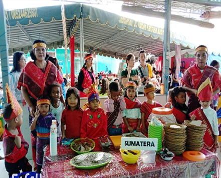 Selain membawa masakan khas daerah masing masing, lengkap beserta baju adat, acara juga dimeriahkan dengan penampilan tari tarian dari daerah masing masing yang diwakili oleh setiap kelas ; Playgroup menampilkan tarian Ginggangguly perwakilan dari suku Batak, TK A 1 tarian dari Sulawesi Utara, TK-A 2 tarian Marendeng Marampa dr Toraja, TK-A 3 tari Janger dari Bali, TK-B 1 tari Maumere dari NTT, TK- B2 tari Yamko Rambe Yamko dari Papua, TK- B3 tari Rasa sangane dari Maluku, TK-B4 tari Sajojo dari Papua dan diakhiri dengan lagu ” Tanah Papua” dan sebagai acara puncaknya adalah makan bersama orang tua dengan jamuan makan menu Nusantara.