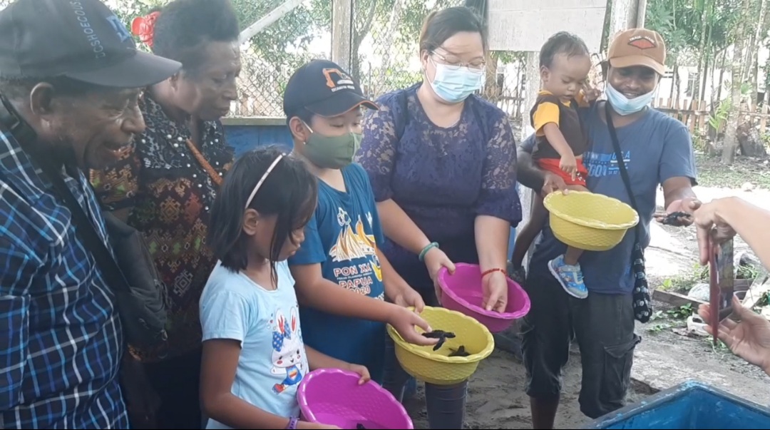 Warga berdatangan dari kota Nabire dan sekitarnya, guna melihat secara langsung, dan ikut melepaskan anak anak penyu.