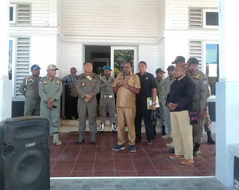 Hadir dalam aksi ini, Ketua Asosiasi Honorer se-kabupaten Nabire, Petrus Rumere, S.Sos., serta Kepala Satpol PP Nabire, Burhanuddin Pawenari.