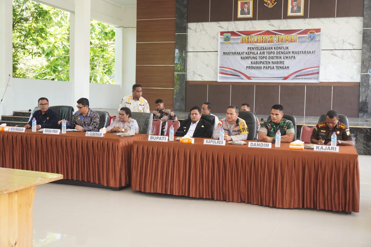 Perdamaian itu dilaksanakan di aula Mapolres Nabire, Kamis (14/12/2023), dihadiri masing-masing kepala suku yang sebelumnya bertikai. Rapat perdamaian yang digelar kurang lebih 2 jam itu berbuah hasil yang baik, yakni ketiganya bersepakat berdamai dan saling hidup rukun kembali.