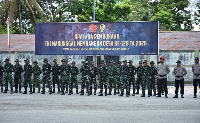 Biak Numfor, 23 April 2026 – Program TNI Manunggal Membangun Desa (TMMD) ke-128 Tahun Anggaran 2026 wilayah Kodim 1708/Biak Numfor (BN) resmi dimulai melalui upacara pembukaan yang digelar di Lapangan Apel Makodim 1708/BN, Jalan Majapahit, Distrik Biak Timur, Kabupaten Biak Numfor, Rabu (22/4/2026).