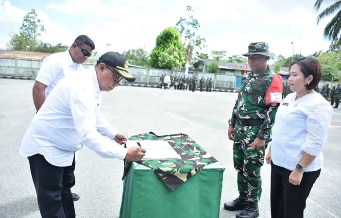 Pembukaan TMMD ditandai dengan penyerahan peralatan kerja oleh Plt Sekda Kabupaten Biak Numfor kepada dua perwakilan prajurit Satgas TMMD serta penandatanganan Naskah Program TMMD ke-128 oleh Dandim 1708/BN bersama pemerintah daerah.