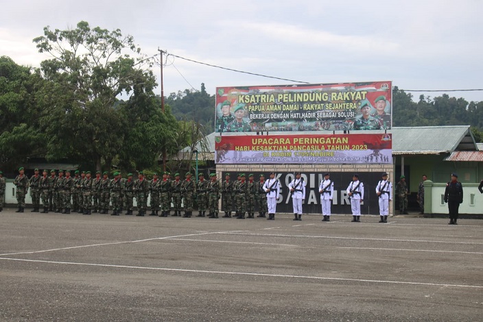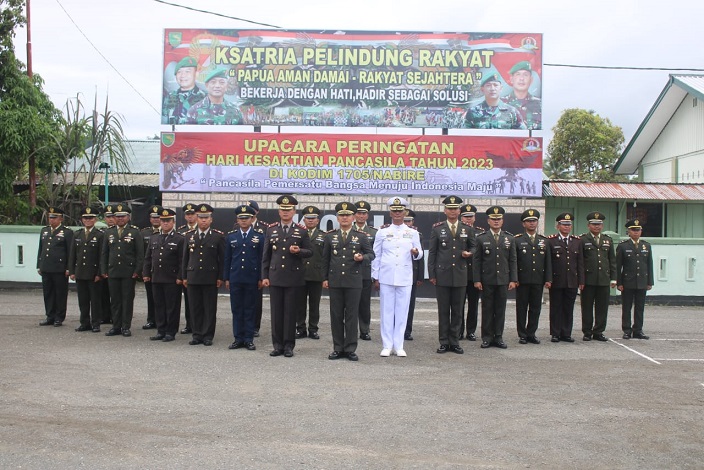 Nabire, Dalam rangka memperingati Hari Kesaktian Pancasila 1 Oktober 2023 dengan tema “Pancasila Pemersatu Bangsa Menuju Indonesia Maju”, telah dilaksanakan upacara bertempat di lapangan hitam, Kodim 1705/Nabire.