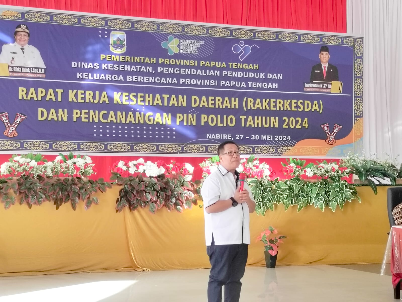 Dalam sambutannya, Kepala Dinas Kesehatan, Pengendalian Penduduk, dan Keluarga Berencana, dr. Silwanus Sumule, menyampaikan pentingnya tanggung jawab yang diemban oleh seluruh peserta Rakerkesda. Ia menekankan peluncuran PIN Polio sebagai langkah krusial dalam upaya meningkatkan cakupan imunisasi di setiap kabupaten.