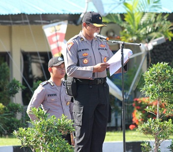 Kabag Ops membacakan sambutan tertulis Kapolri, yang menegaskan bahwa Kapolri bangga dengan keberadaan jajaran Satuan Pengamanan dimanapun berada.