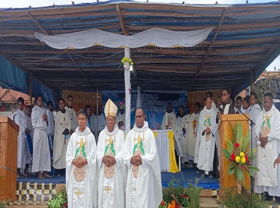 Perayaan pesta imam bagi umat dekenat Moni-Puncak ini diikuti antusias oleh ribuan umat dalam suasana hening dan meriah.