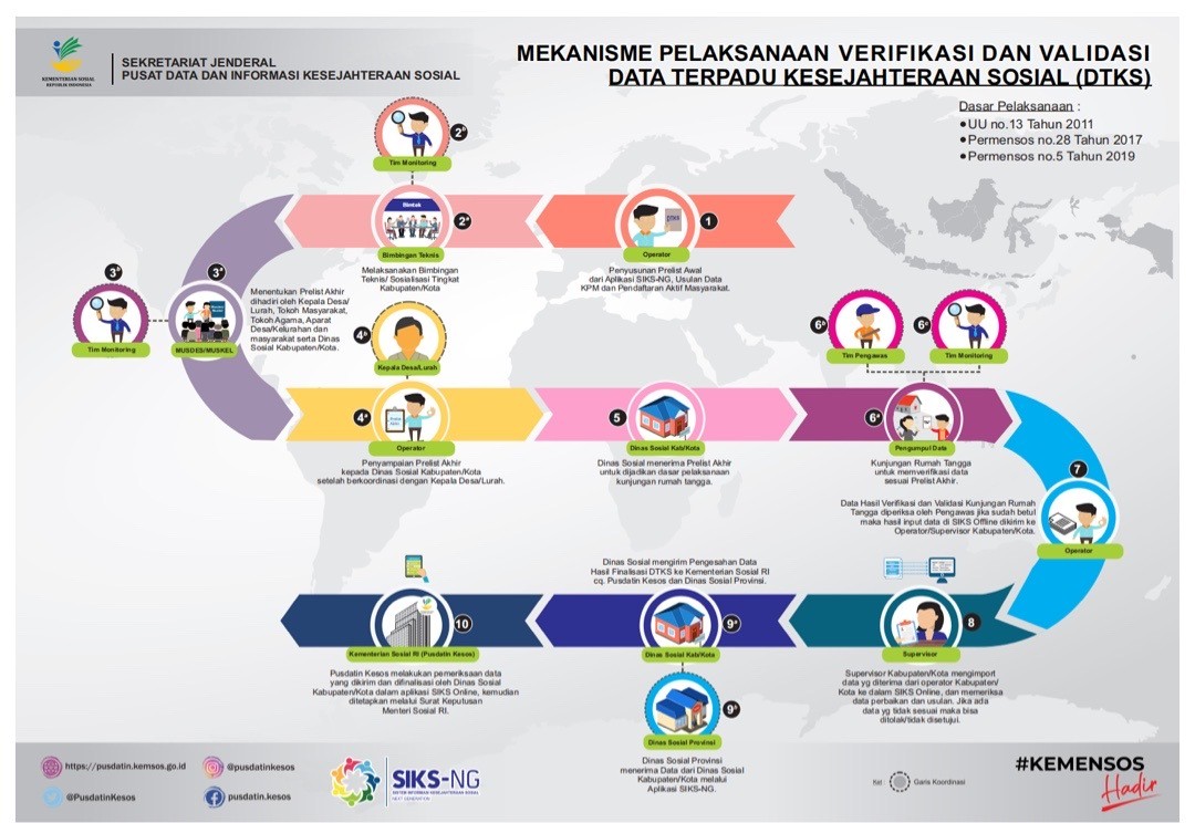 Secara Rutin , Kemensos meminta Dinsos melaksanakan update data Rumah Tangga Miskin (RTM) dari kampung/kelurahan untuk dilakukan validasi data. Data RTM yang diterima Dinsos tersebut selanjutnya akan diinput melalui aplikasi Sistem Informasi Kesejahteraan Sosial – Next Generation (SIKS-NG) milik Kemensos.