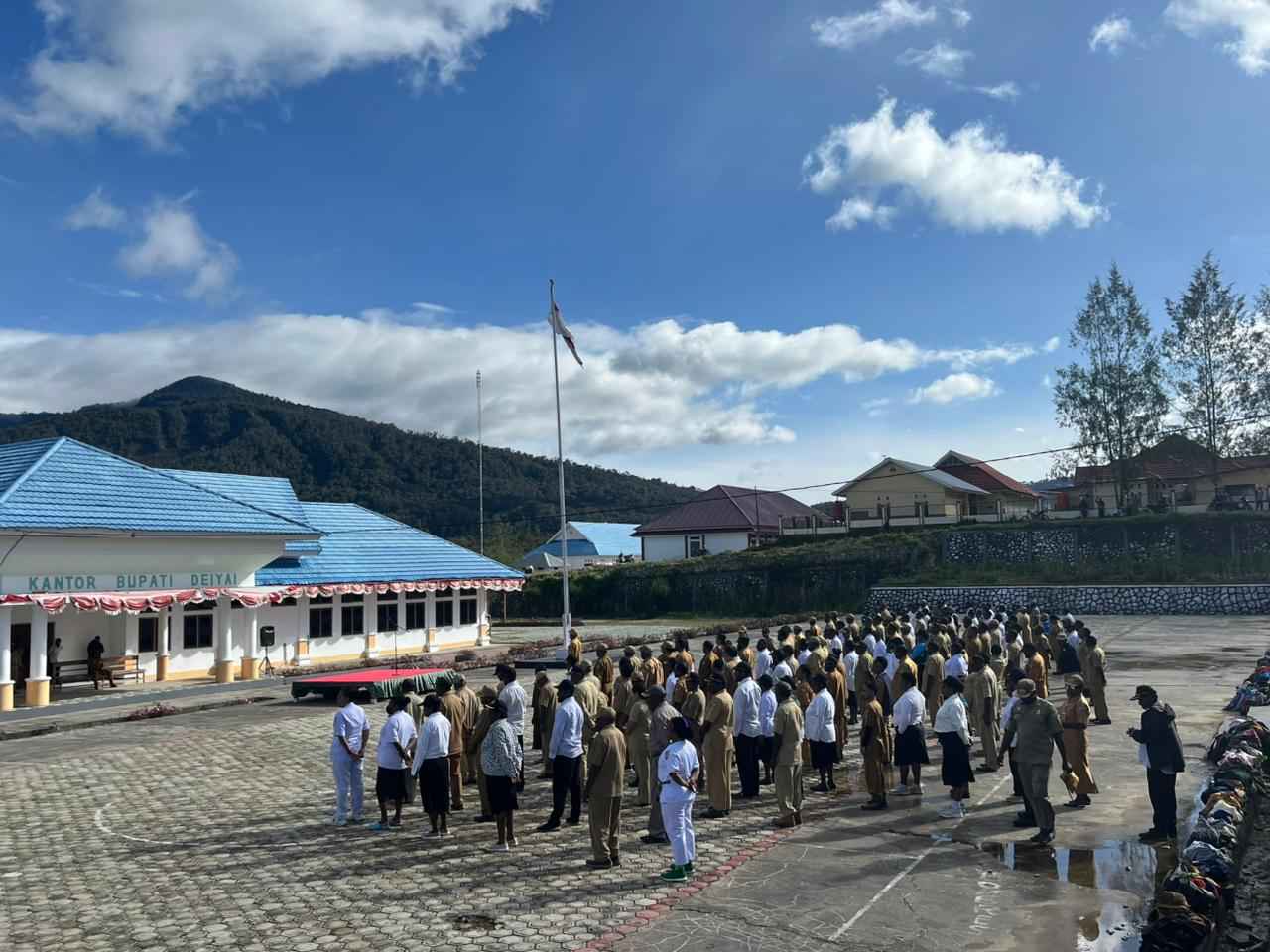 Hal tersebut disampaikan Wabup saat apel gabungan ASN dan tenaga kontrak yang berlangsung di halaman Kantor Bupati Deiyai, Senin (9/3/2026).