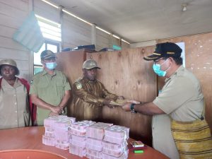 Dogiyai, Bertempat di kantor Dinas Sosial Dogiyai ,Wakil Bupati Dogiyai Oskar Makai, SH menyerahkan uang 1.500.000.000.- (Satu Miliar Lima Ratus Juta) Kepada Kepala Dinas Sosial Nelson Manik, S. Sos, M. AP untuk membayarkan upah pelayanan di Gereja Katolik Maupun Gereja Protestan, 13/07/2021.