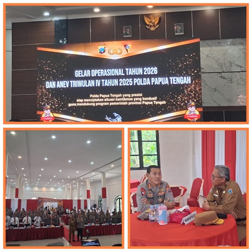 Penegasan tersebut disampaikan saat membacakan sambutan Kepala Kepolisian Daerah Papua Tengah dalam kegiatan Gelar Operasional 2026 dan Analisis dan Evaluasi (Anev) Kamtibmas Triwulan IV Tahun 2025, yang berlangsung di Aula Polres Nabire, Senin (26/1/2026).
