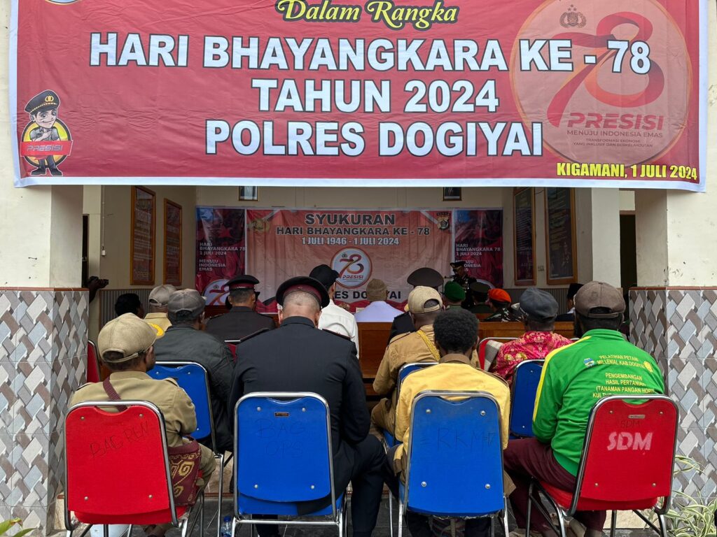 Setelah upacara, acara dilanjutkan dengan syukuran yang ditandai dengan pemotongan tumpeng oleh Wakapolres Dogiyai AKP Muhamad Tahir. Sebelum pemotongan tumpeng, Wakapolres membacakan amanat Kapolda Papua yang menyoroti tantangan Polri ke depan.