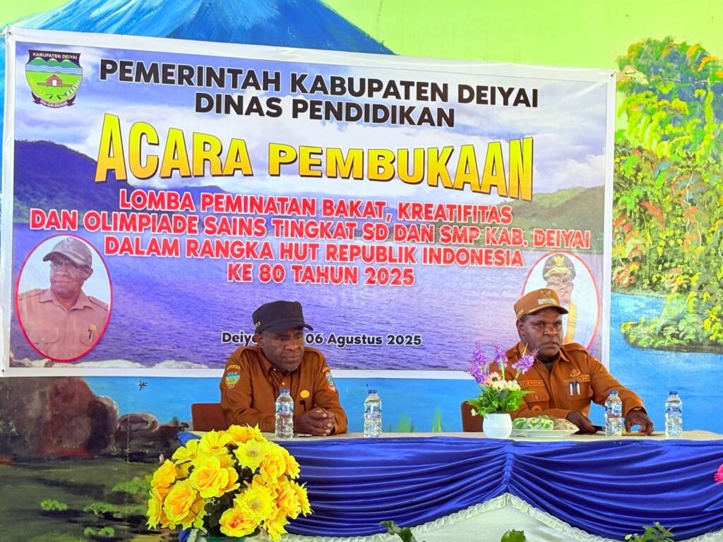 Deiyai, 5 Agustus 2025 – Pemerintah Kabupaten Deiyai resmi menggelar Lomba Peminatan Bakat dan Olimpiade Sains tingkat SD dan SMP se-Kabupaten Deiyai dalam rangka memperingati HUT ke-80 Republik Indonesia. Kegiatan ini dibuka oleh Wakil Bupati Deiyai, Ayub Pigome, di Aula SMP Negeri 1 Deiyai, Papua Tengah.
