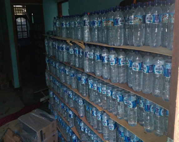 Setelah dilakukan pengecekan, didalam rumah tersebut ditemukan ribuan botol air mineral yang tersusun rapi. Ditemukan juga bahan lain seperti sabun mandi, sabun pencuci piring dan barang kadaluarsa lainnya.